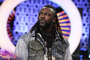 Then as he does his little dance, we see Swerve Strickland come out to even things up by handing a chain to Page. Mox comes after him only to take a chained fist to the face. He brings the champ over to the ropes, looking to squeeze the life out of Mox.